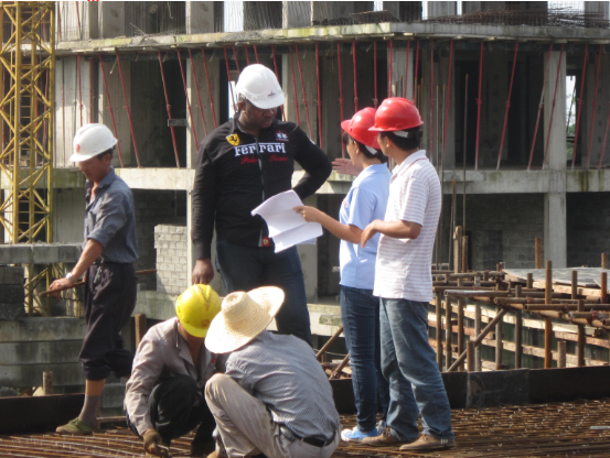 █向外方實習(xí)生介紹工地建設(shè)情況