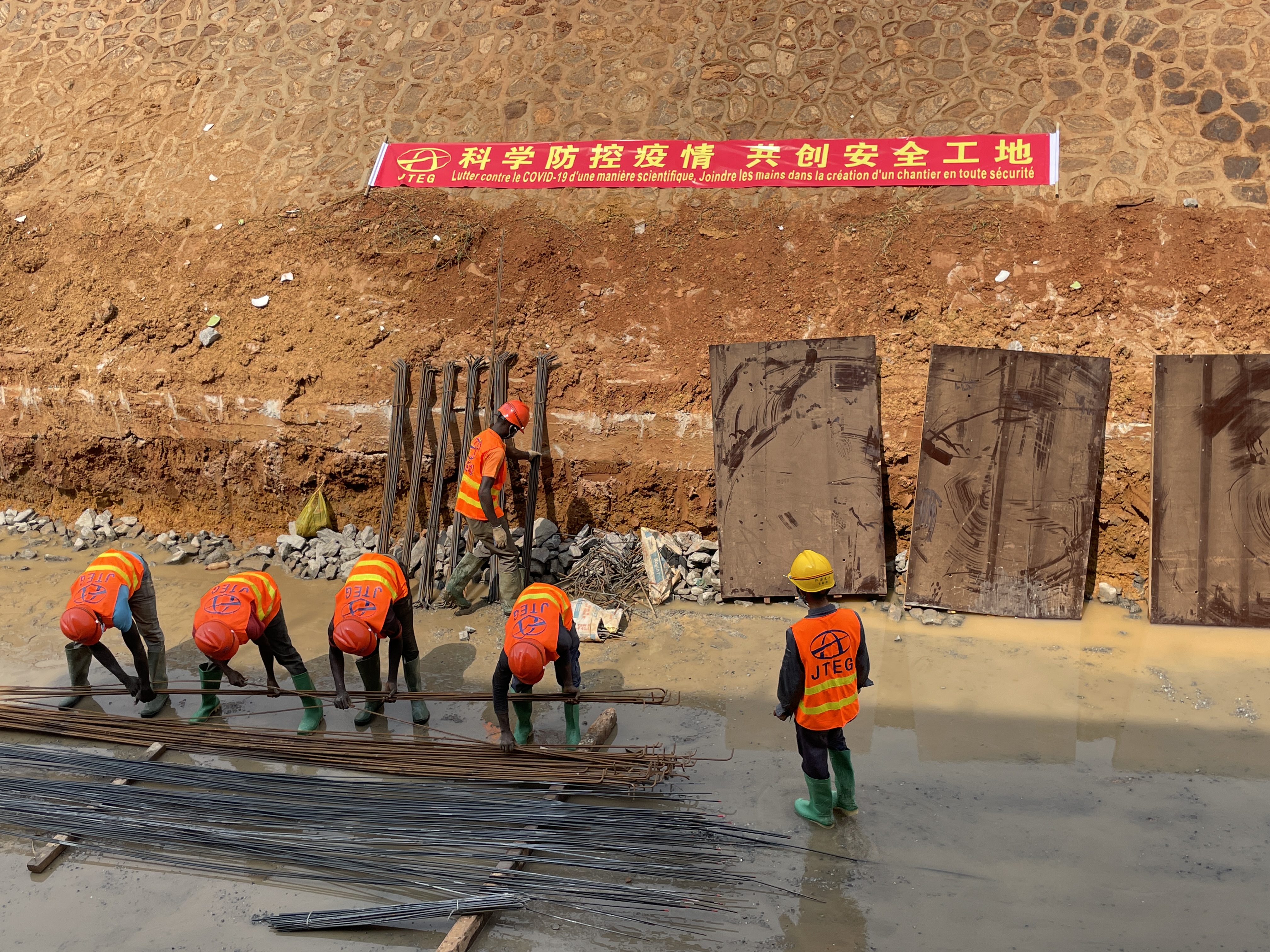 春節(jié)期間,江蘇交工喀麥隆機(jī)場(chǎng)高速項(xiàng)目建設(shè)現(xiàn)場(chǎng),中方員工正帶領(lǐng)著當(dāng)?shù)乜ぐ凑枕?xiàng)目部制定的春節(jié)施工計(jì)劃如火如荼推進(jìn)建設(shè)。目前項(xiàng)目主體工程已經(jīng)基本完成,剩余工作量主要集中在RN3國(guó)道與RN10國(guó)道面層等方面,計(jì)劃在6月份之前完成。