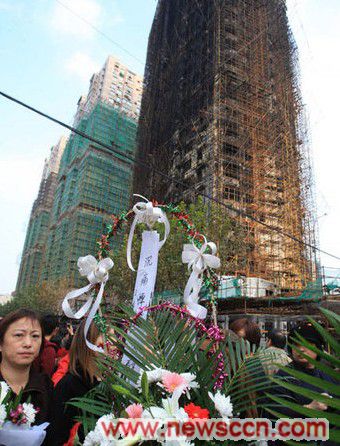 11月18日,在上海膠州路“11·15”火災(zāi)大樓前,擺滿了社會(huì)各界民眾悼念逝者的鮮花。